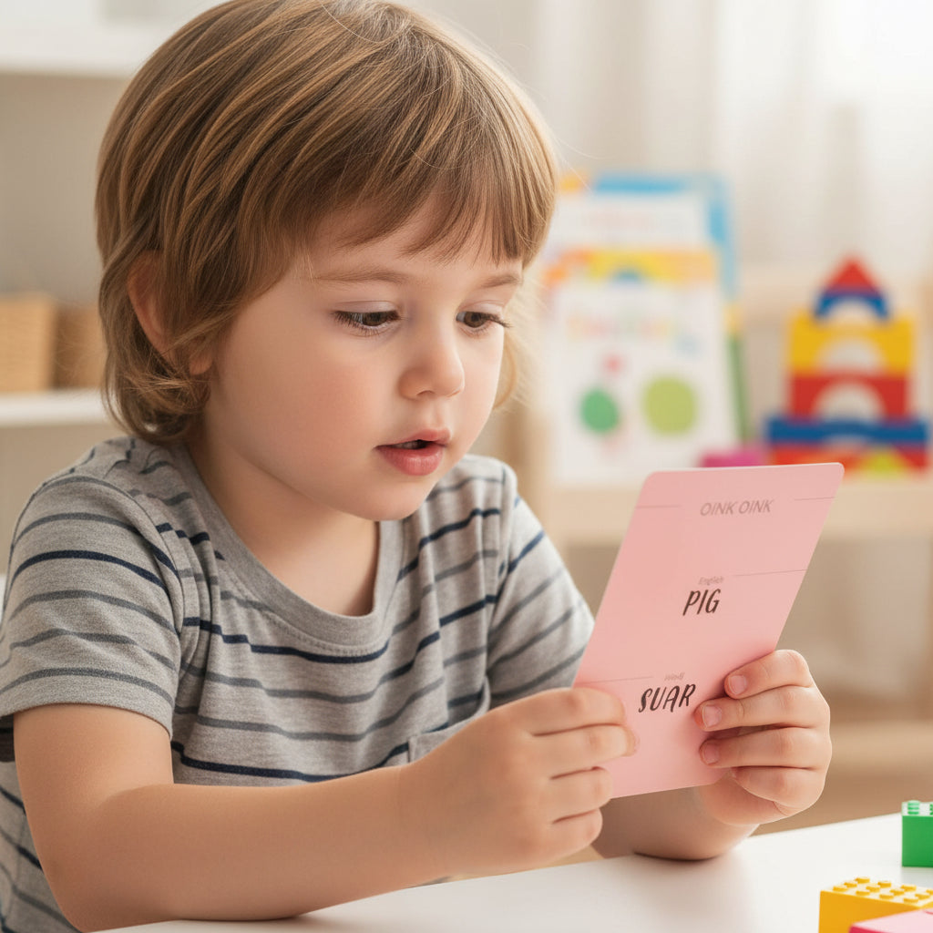 Enhance your child's language skills with our Hindi-English Animals Flash Cards, and watch them learn and grow in both Hindi and English!