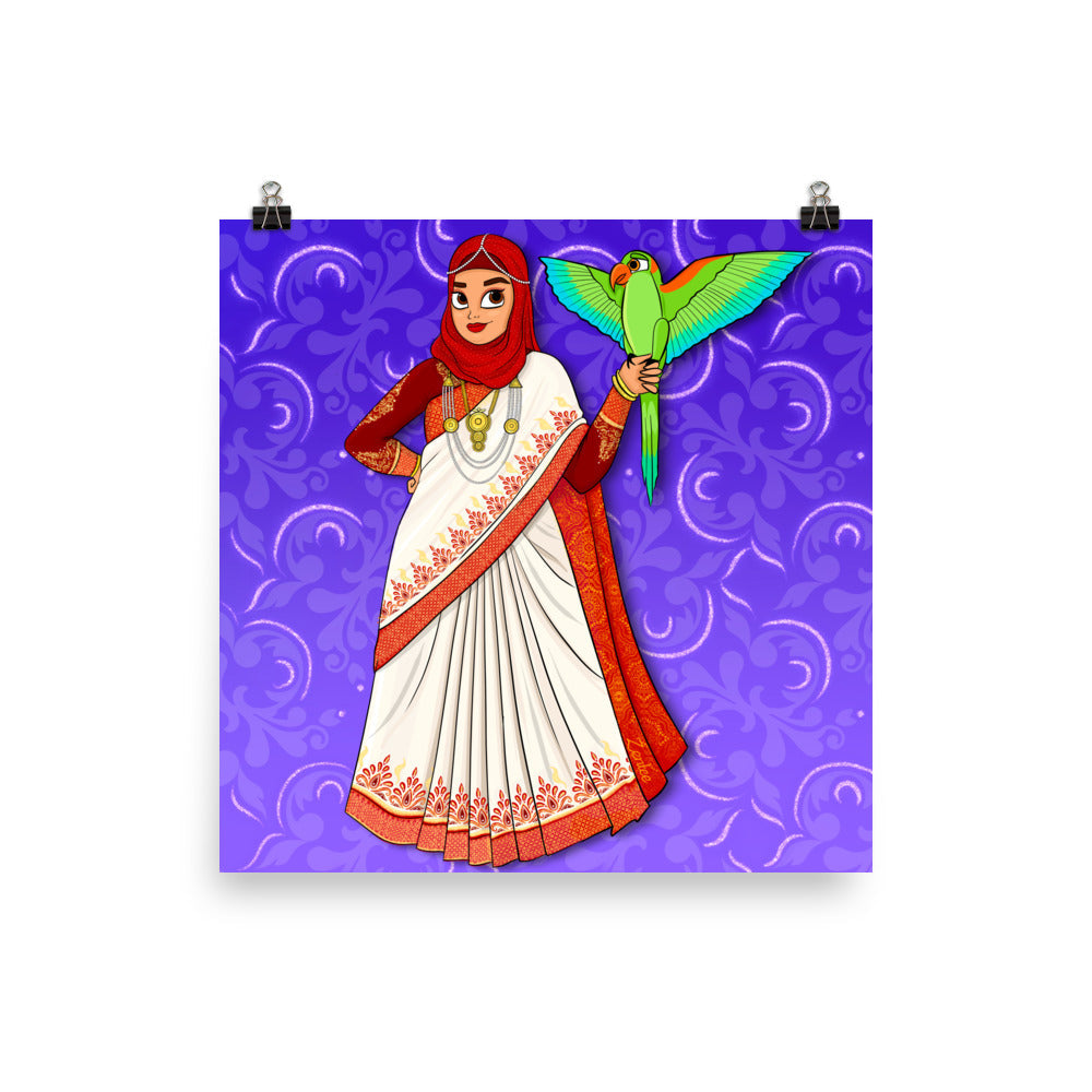 Bangladeshi Muslim princess and her Alexandrine Parrot
