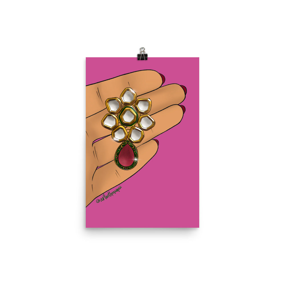 This is a high-quality print of beautiful hanging Kundan desi earrings that would brighten up your room. Pairs well with the other desi earring prints I have available :)