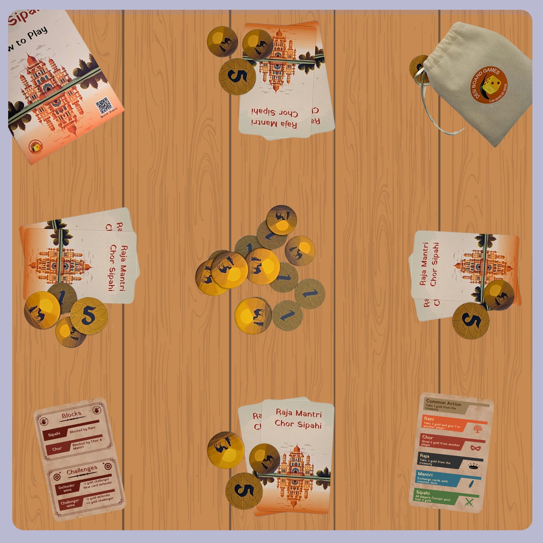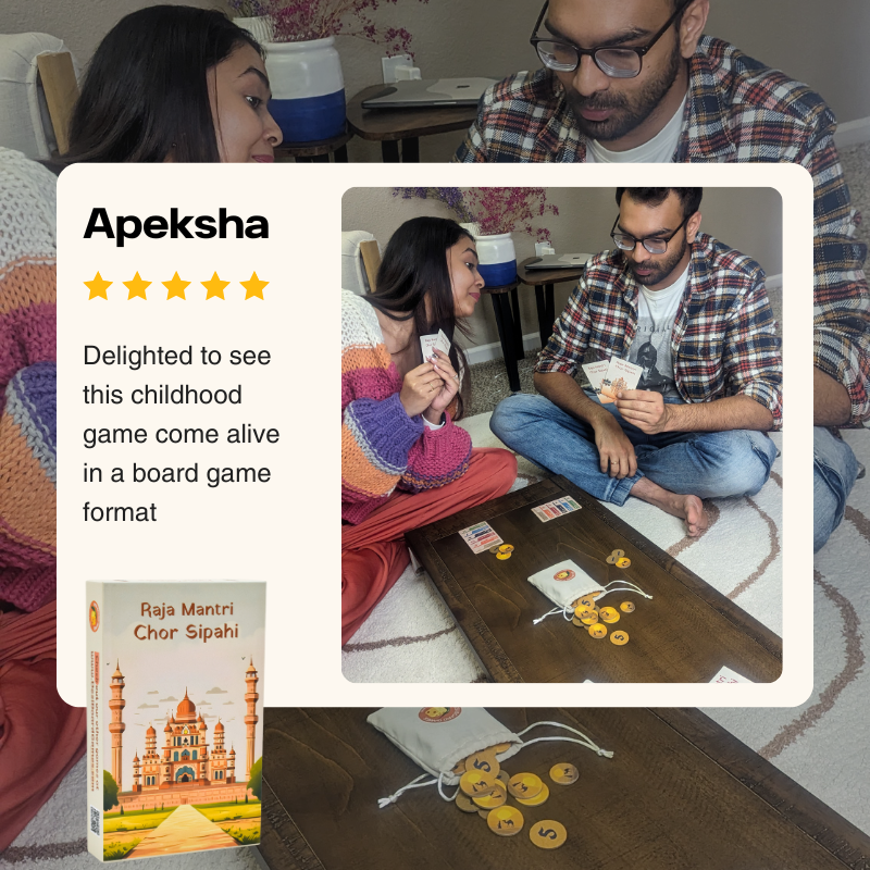 Light strategy bluffing game where you compete with your friends to become the richest person in Rajasthan, India. Will you follow the path of honesty or deceit ?
